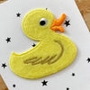 A richly embroidered felt rubber duck patch. The patch has an iron-on backing so can be removed from the card and ironed straight on to the fabric or sewn on with a few hand stitches.