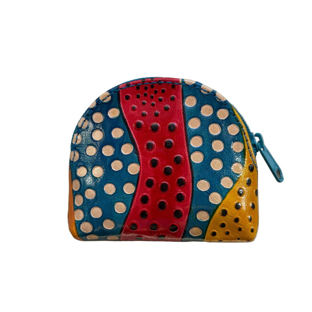 This small leather wallet with a peppy print is an ideal companion for all sorts of odds and ends and fits in every small pocket.