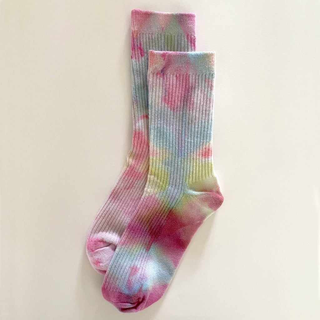 Put a straw in these socks and enjoy the electrolytes. These socks are ice dyed and the colors go where the water takes them.