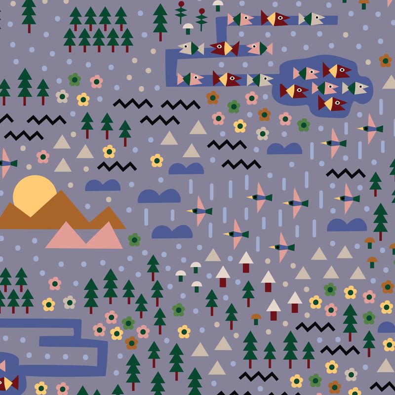 Inspired by a meander in the forest featuring butterflies, moths, mushrooms, birds and many of the creatures you'd expect to find on your journey. This collection includes florals and modern bohemian graphic style prints in earthy tones.