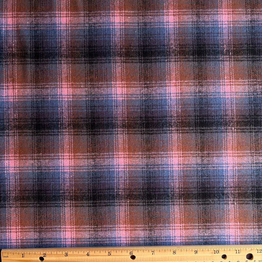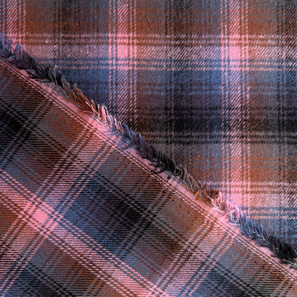 Experience the cozy comfort and dramatic beauty of the mountains at sunset with our Alpenglow Plaid Flannel. This premium, 100% brushed cotton flannel features a soft hand and a woven plaid pattern inspired by the transient light of alpenglow. This flannel is the perfect choice for creating exceptionally soft, warm, and visually dynamic garments, from classic shirts and robes to unique seasonal projects.