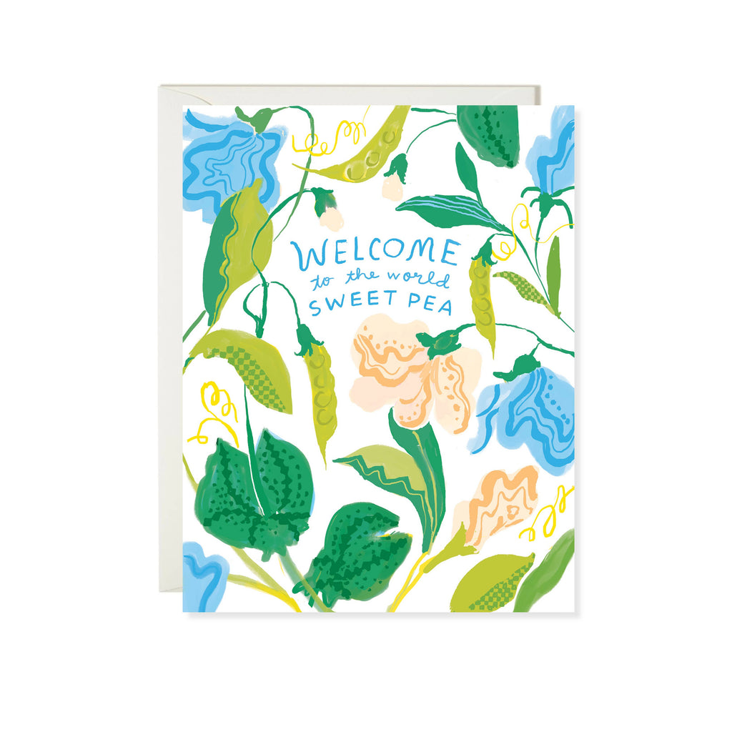 "Welcome to the world Sweet Pea." Welcome home the sweetest pea with this brightly illustrated botanical drawing.