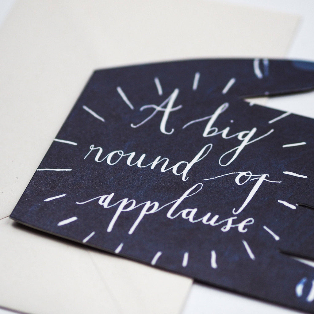 A fun hand-shaped card that sends a big round of applause for that high-achiever in your life! (or I guess you could use it sarcastically for your favourite under-achiever).