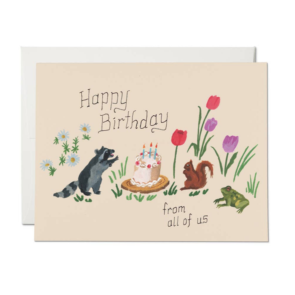 Blank inside. 100lb heavyweight card stock. Offset printed. 4.25 x 5.5 inches. Illustrated by Danielle Kroll. Printed by Red Cap Cards in Los Angeles, California, USA, on recycled paper.