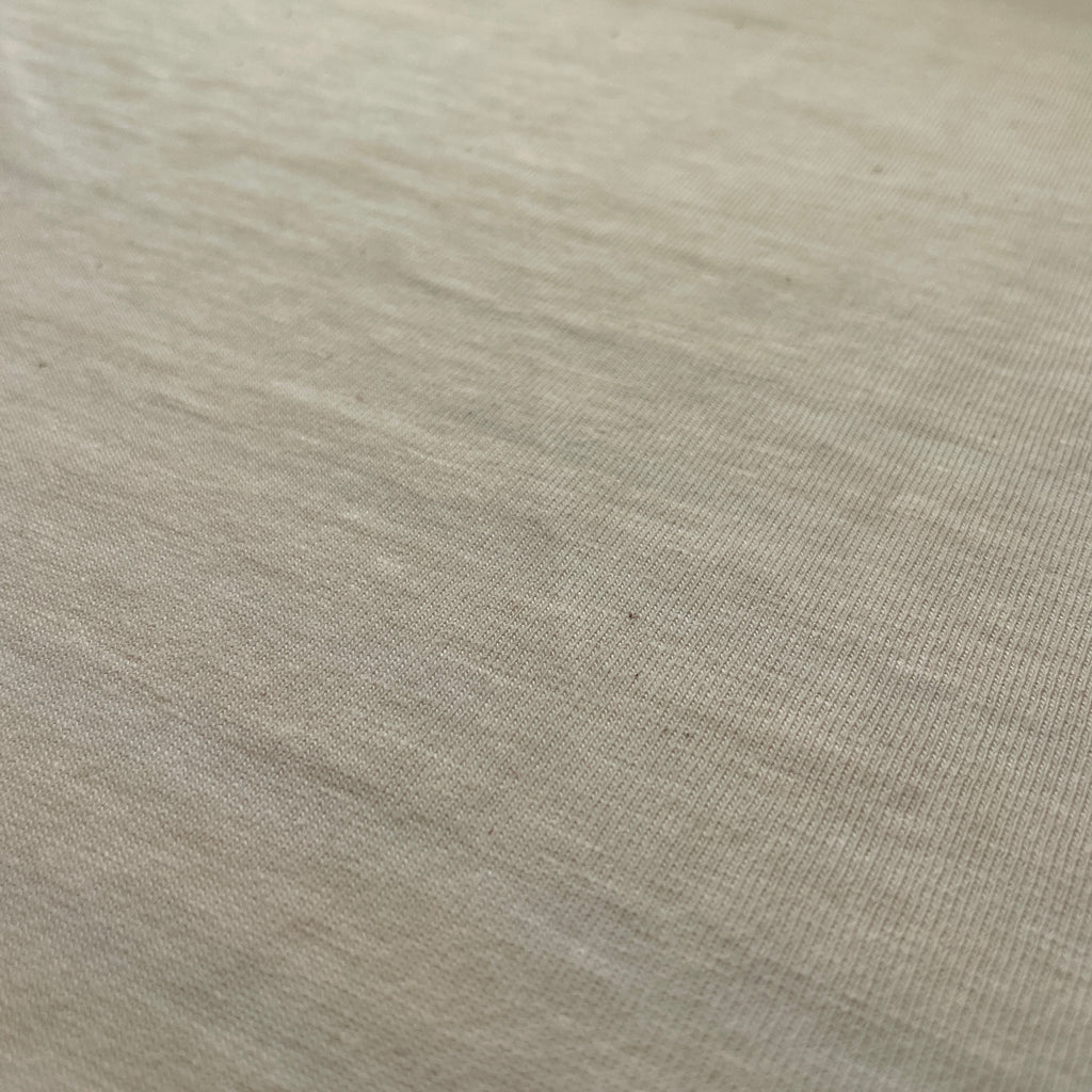 This fabric is ready for garment dyeing (PFGD) and showcases a subtle warm stripe, adding a charming multi-toned look that changes depending on the dyeing process.