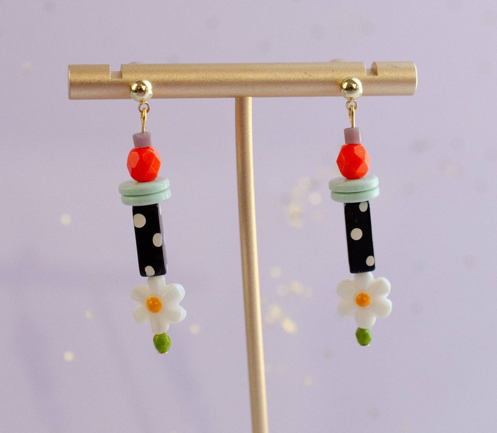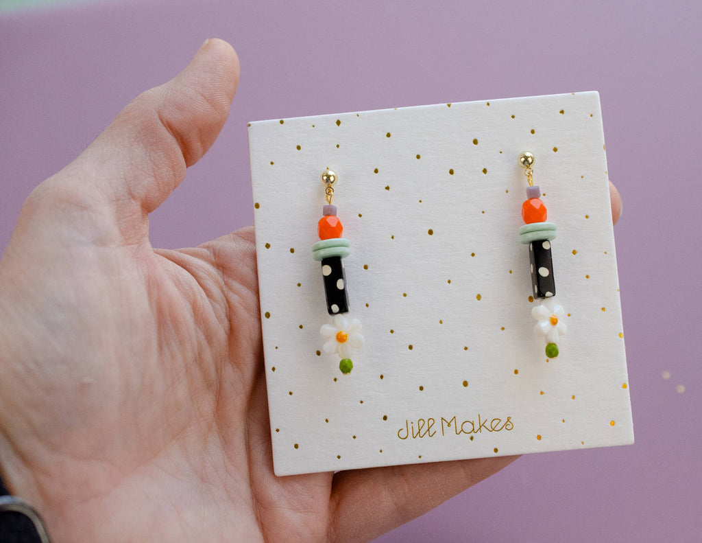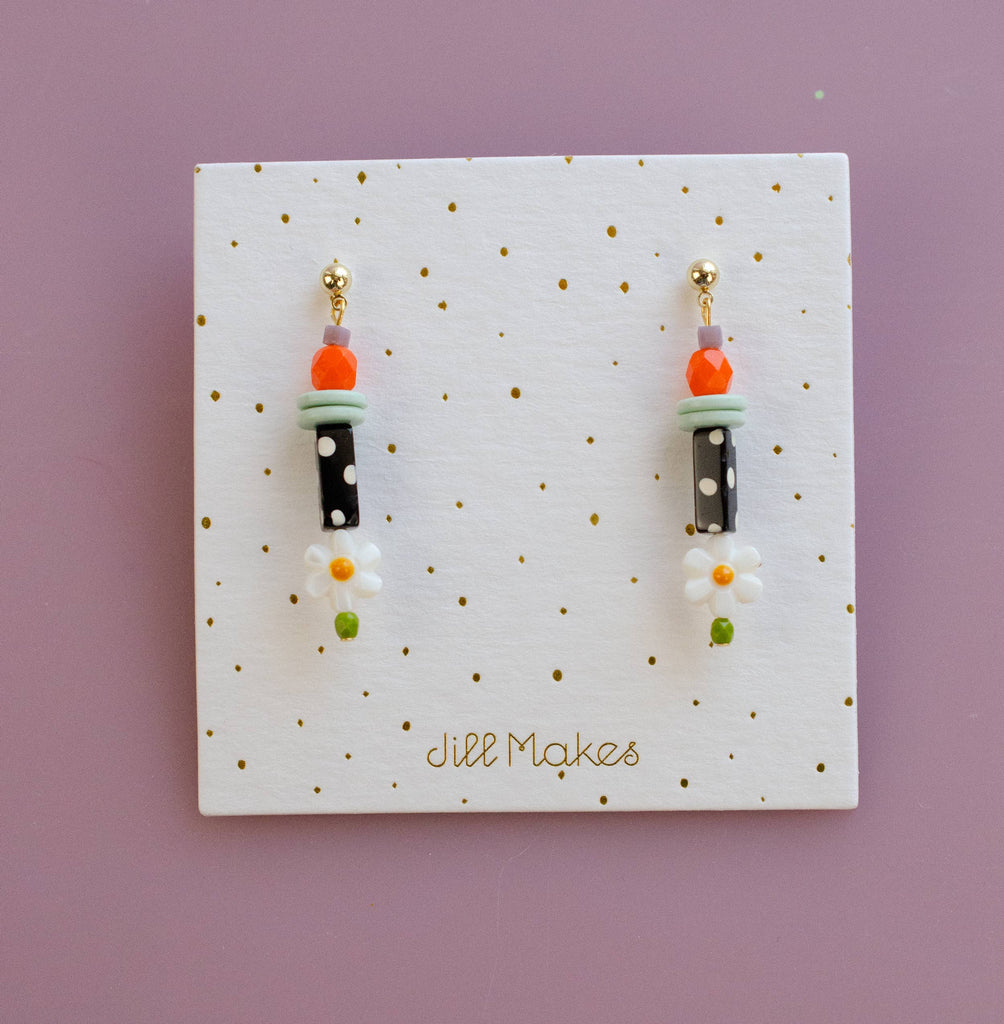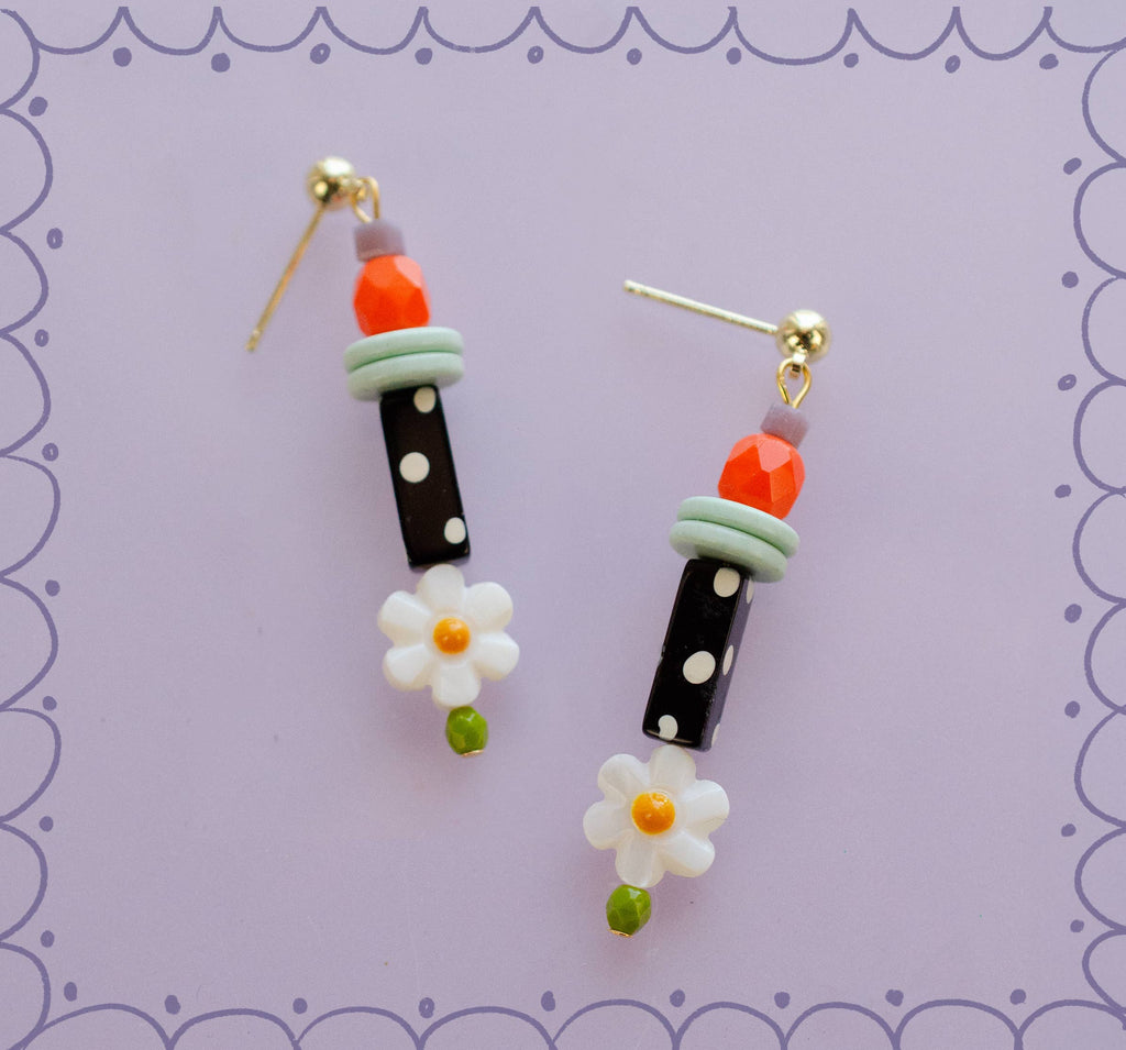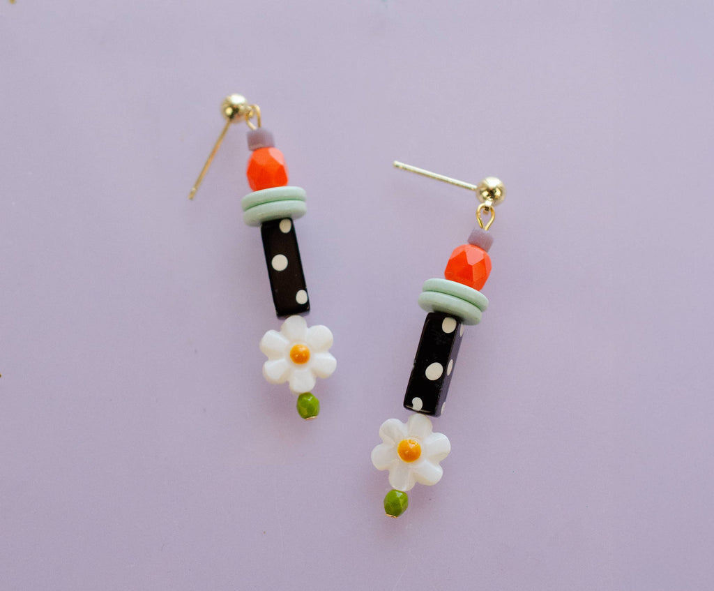 These Handmade Gemstone Flower Earrings are a beautiful addition to any outfit. Each earring features a hand-carved flower gemstone with a beautiful gold and pearl seed bead design. These earrings come with a 4mm gold plated over sterling silver post. *Beads may vary slightly.