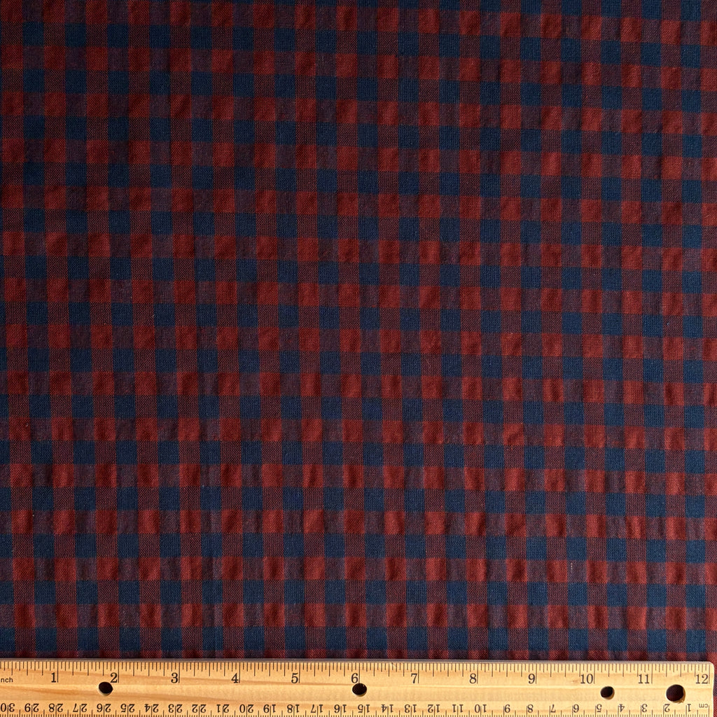 Bring a touch of rustic sophistication and cozy charm to your next sewing project with our Buffalo Check / Bordeaux Cotton Gingham Fabric. This beautiful textile features a small-scale, woven gingham check pattern, combining a rich Bordeaux with a classic Deep Blue.
