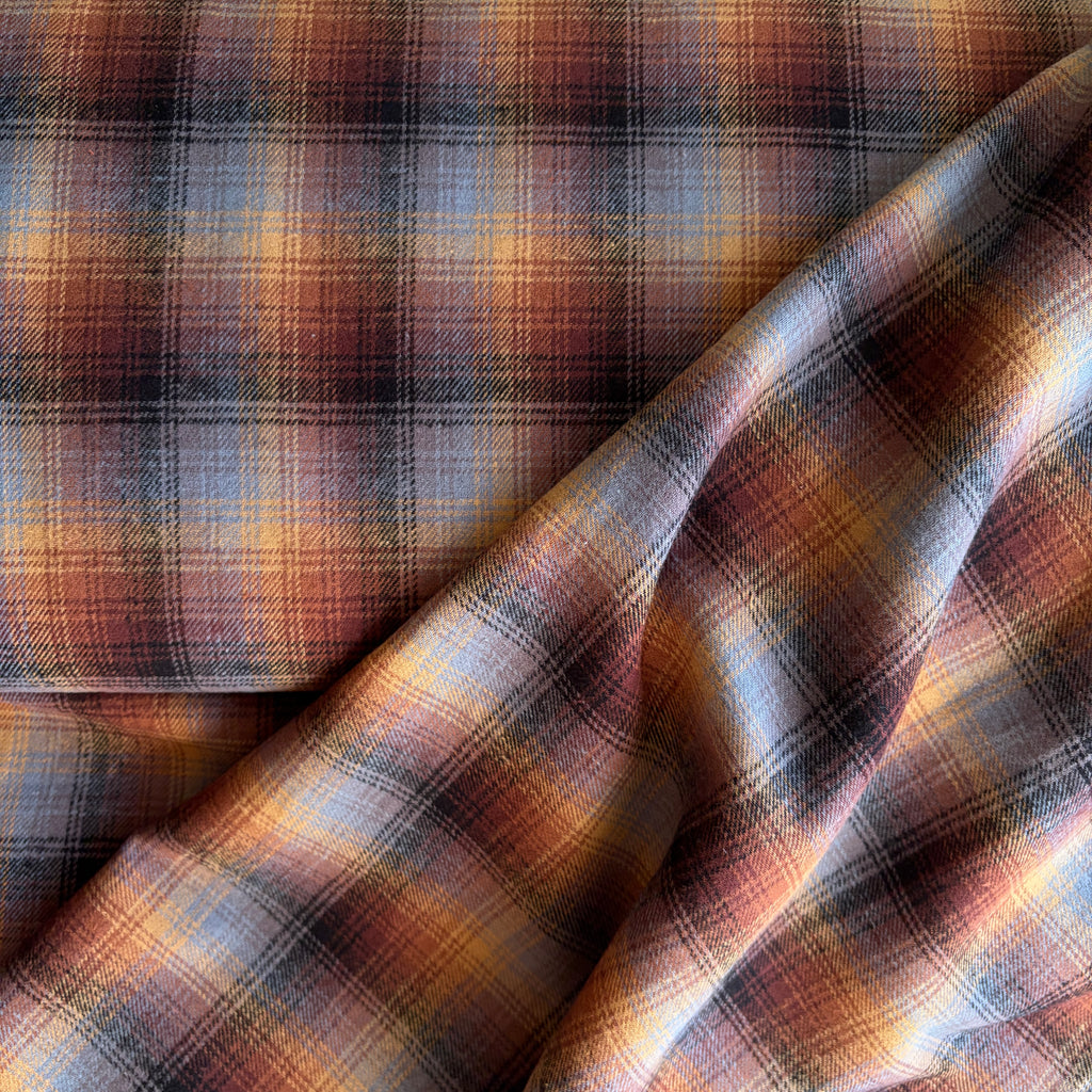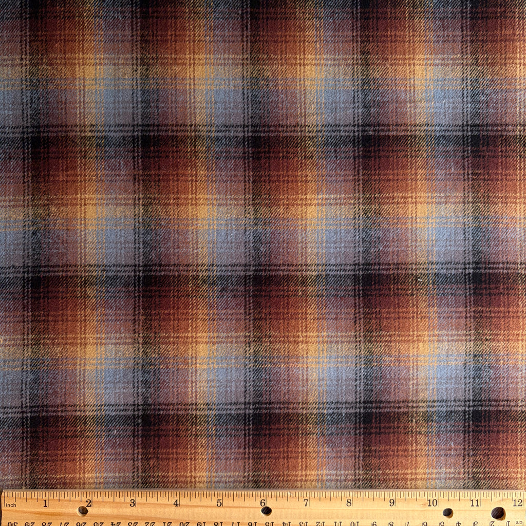 Celebrate the rich, dynamic hues of autumn with our Harvest Gold Plaid Flannel. This premium, 100% brushed cotton flannel offers an exceptionally soft and comforting hand, perfect for cozy layering during the cooler months. This fabric is ideal for capturing the spirit of the season, ensuring your handmade shirts, robes, pajamas, or cozy quilts provide both warmth and style.
