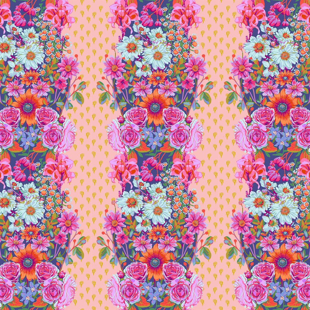 Anna Maria's new collection features a mix of her familiar favorite prints and fresh designs, including wide floral border prints, stripes, zigzags, waves, and scallops. Designed to be versatile, the collection includes diverse fabric scales and styles meant to frame creativity in quilting and crafting projects, offering rich colors and painterly artistry for vibrant effects.