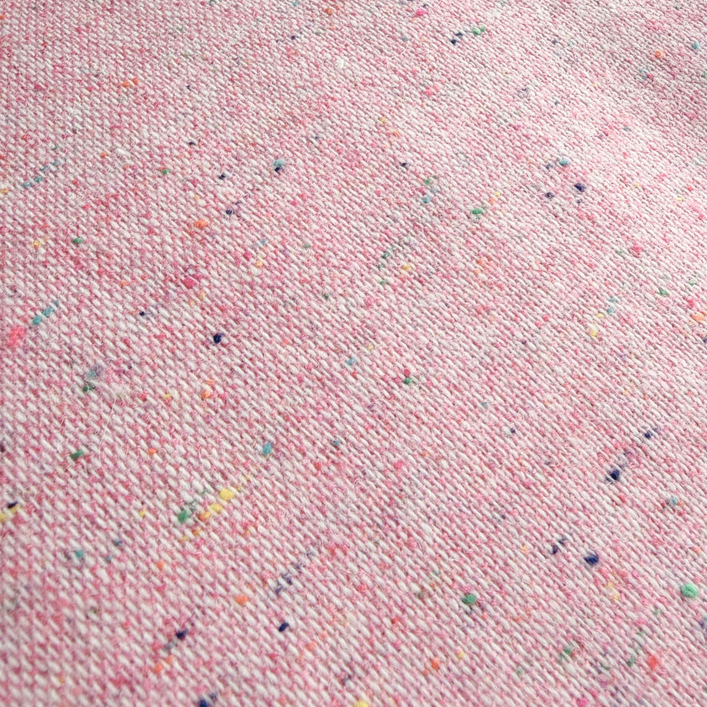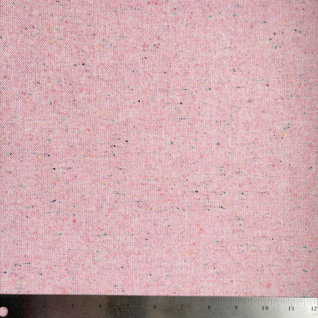 Satisfy your sweet tooth with our playful Cotton Candy Wool Blend. This midweight fabric captures the playful charm of a favorite treat, blending a soft, rosy pink base with a cheerful confetti of multicolored speckles.