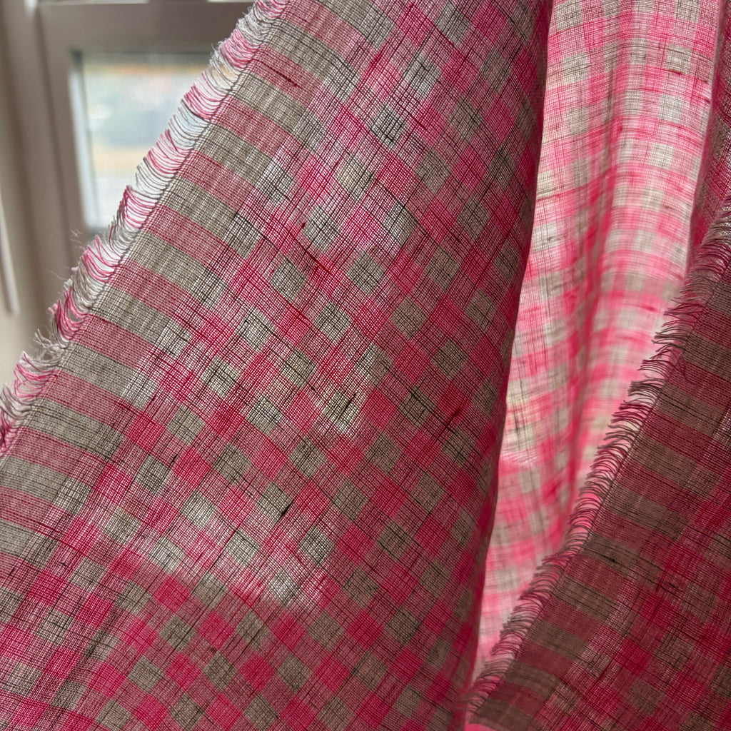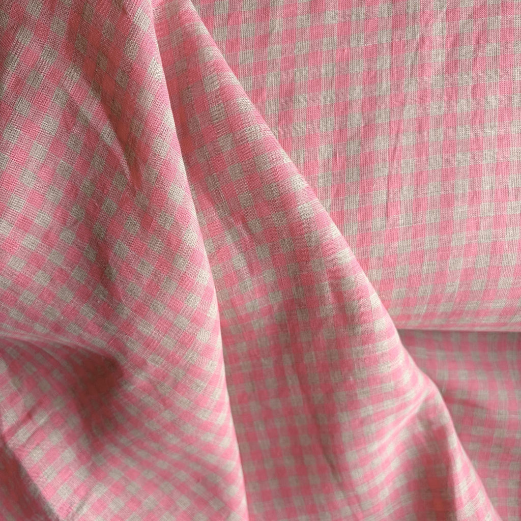 Our Rosewater Linen Gingham offers a refined, soft twist on the classic checkered pattern. This beautiful, breathable fabric is perfect for lightweight, comfortable clothing with a timeless aesthetic.