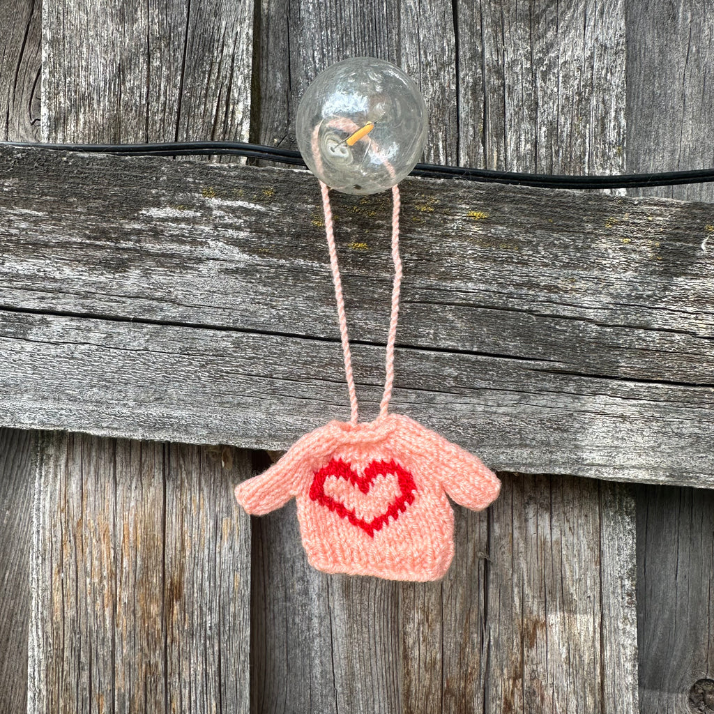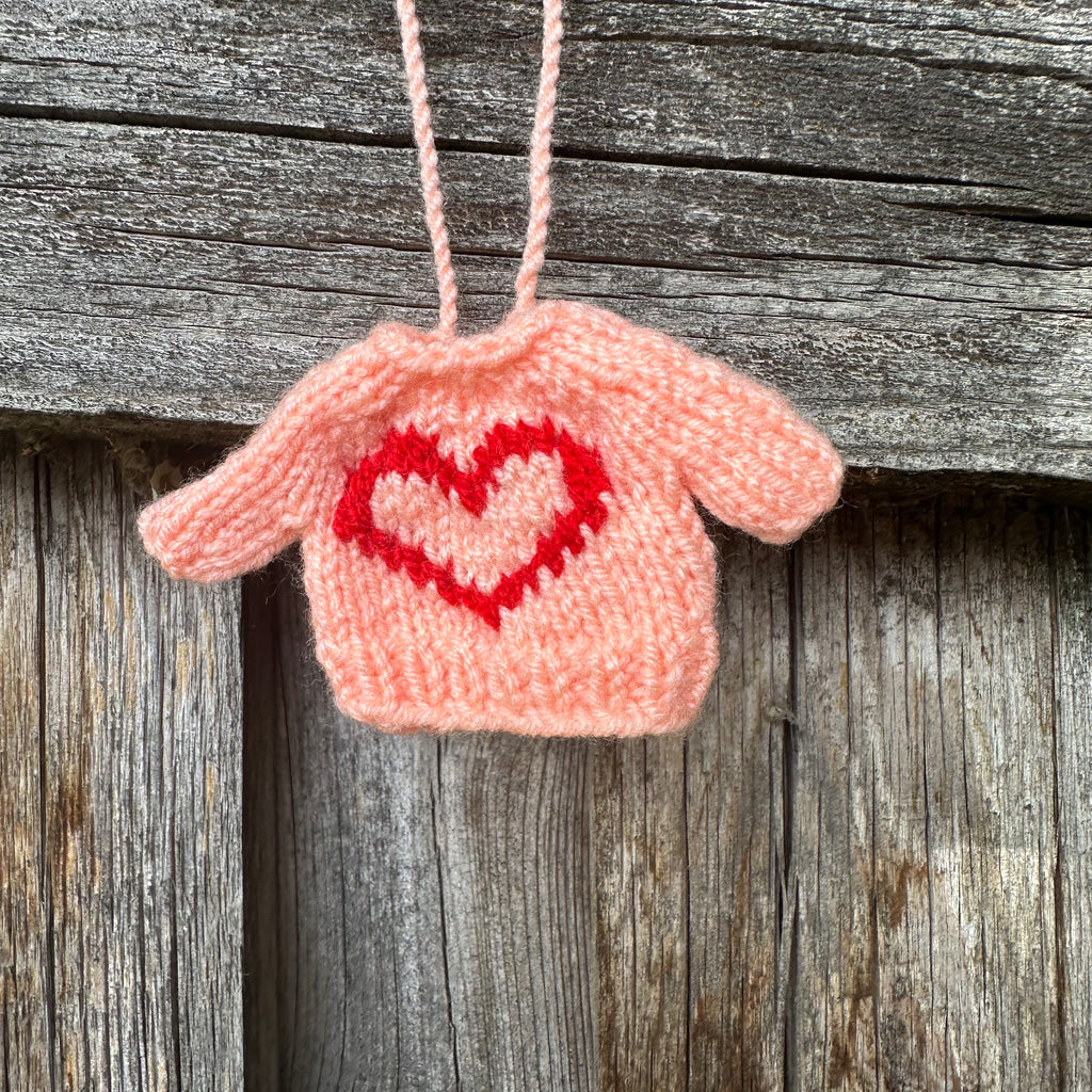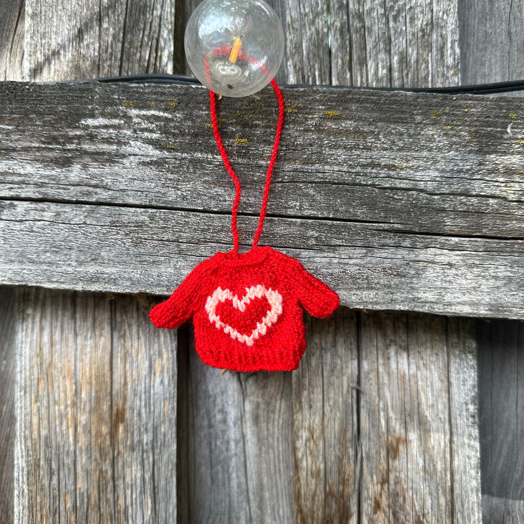 These miniature sweaters make very cute ornaments to hang from the tree. The tiny, knitted detail is amazing. The sweaters are 2 in (5cm) long, and 1 3/4 in (4.5 cm) wide. The string to hang them is approximately 11cm long, but you can shorted it by tying it. There is a slight variation in size, depending on the thickness of the yarn.