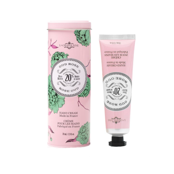 Introducing new full-size hand creams in a beautiful decorative tin. La Chatelaine Ultra-Rich hand creams are blended with organic, fair-trade Shea Butter, Vitamin E and organic Argan Oil to deeply moisturize, nourish and protect. The creamy texture absorbs quickly for immediate hydration and intense repair to effectively leave hands soft, smooth and rejuvenated. This luxurious hand cream will become an essential part of your beauty ritual. Made in France, our large hand cream packaged in a decorative embossed tin is a must-have beauty gift you’ll want to swipe for yourself!