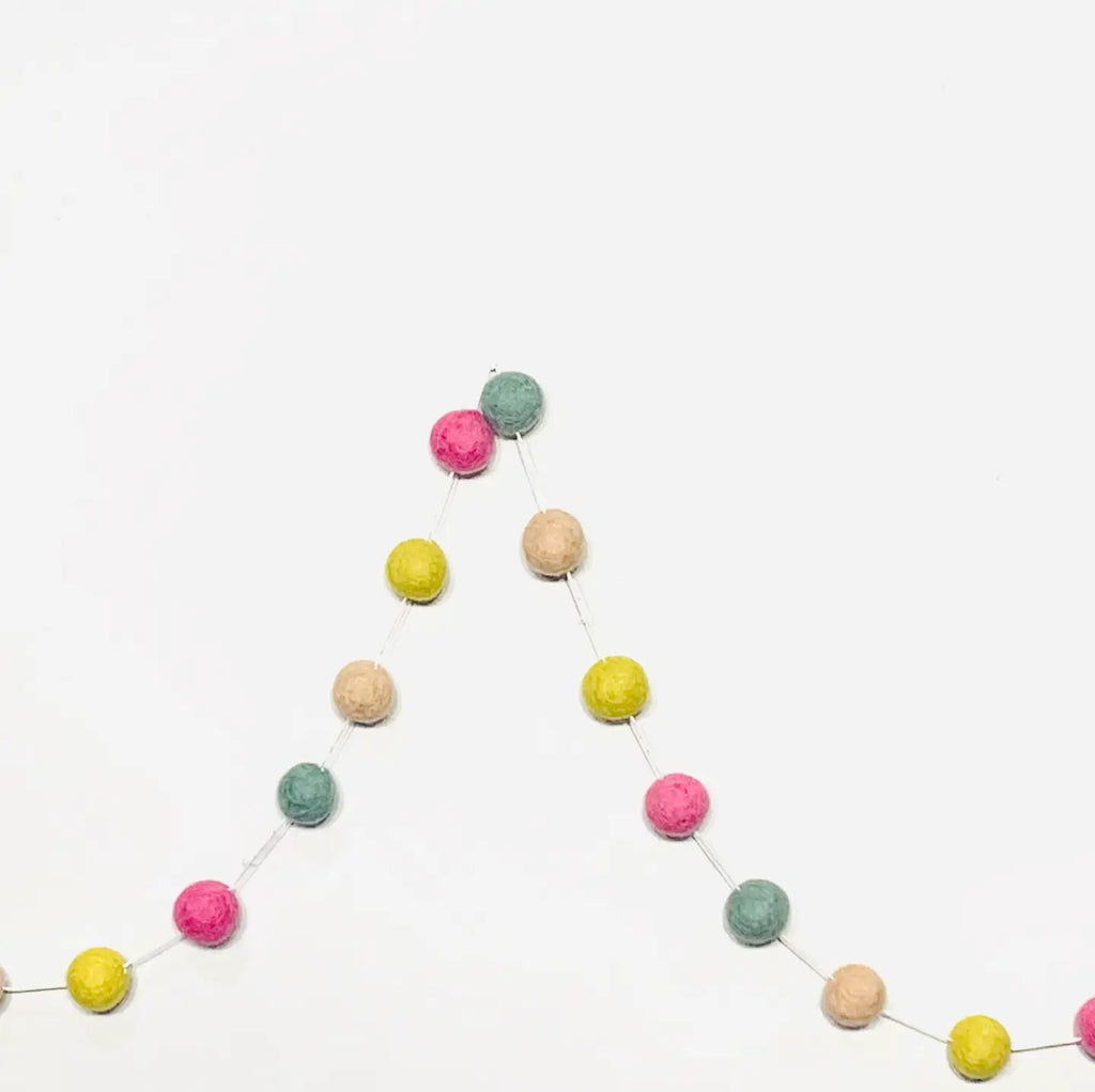 Made in Nepal, this charming garland is crafted from the bark of the Daphne plant, locally known as Lokta. Not only does this method support local cottage industries, but it also encourages plant regrowth. This pastel pompom garland is perfect for adding a touch of whimsy to any party or home decor. Enjoy the exquisite craftsmanship and sustainable design that Giftsland is renowned for.