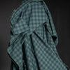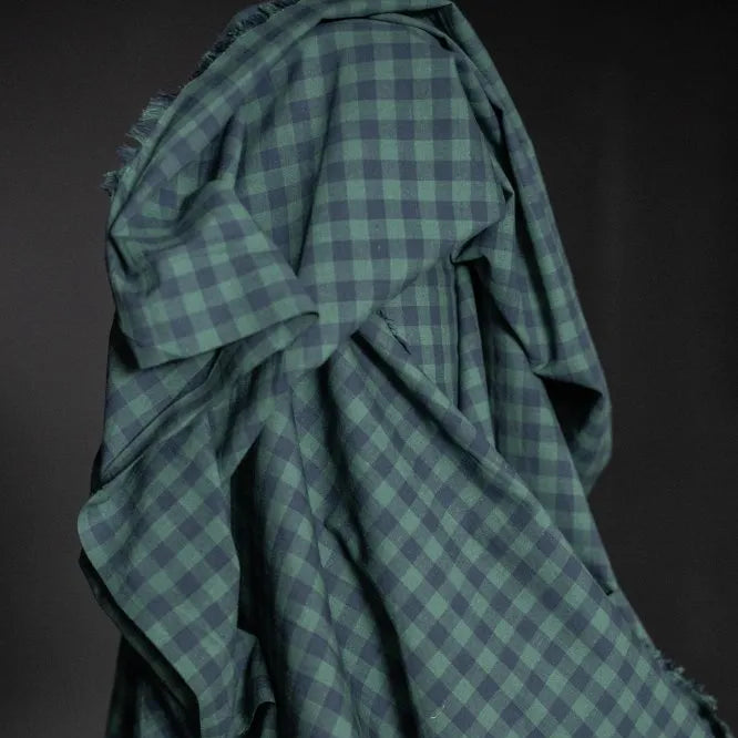 A dark grassy green and navy blue gingham. Checks are approximately .47 inches wide.