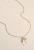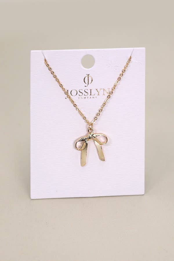 Our Gold Bow Pendant Necklace, a delicate and charming piece designed features a beautifully crafted bow pendant that exudes grace and femininity. The intricate details of the bow add a touch of charm, making it a perfect accessory for various occasions. Product Details: length: 16" charm: .75" x .75" bow ext: 3" Ball Chain Ext clasp: Lobster Claw metal finish: Gold Plated product: Lead & Nickel Compliant anti-tarnish: Double E-coating