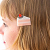 Add a touch of sweetness to your hair with this set of cake alligator clips, made from cellulose acetate, a biodegradable alternative to plastic. Not only will your hair look fantastic, but you'll also be helping the environment—talk about a perfect recipe! Each handmade and hand-painted clip measures 1.75" x 1.5", with unique color variations.