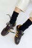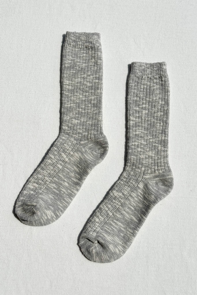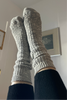 Why We Made This? We were dreaming of a chunky, beautiful knit sock that felt effortless and romantically rustic. The rich texture, faded color palette, thick ribbing and organic scrunching of Cottage Socks invites feelings of wabi sabi and slowing living. These natural, cotton blend socks loves to be worn with vintage florals and tonal layers of luxurious natural fibers. Made in South Korea Contents: 85 Cotton 13 Polyester 2 Spandex Sizing: One size fits most (US women's size 6-10) Care Instructions: Machine wash cold Tumble dry low Do not iron Do not bleach