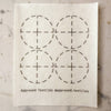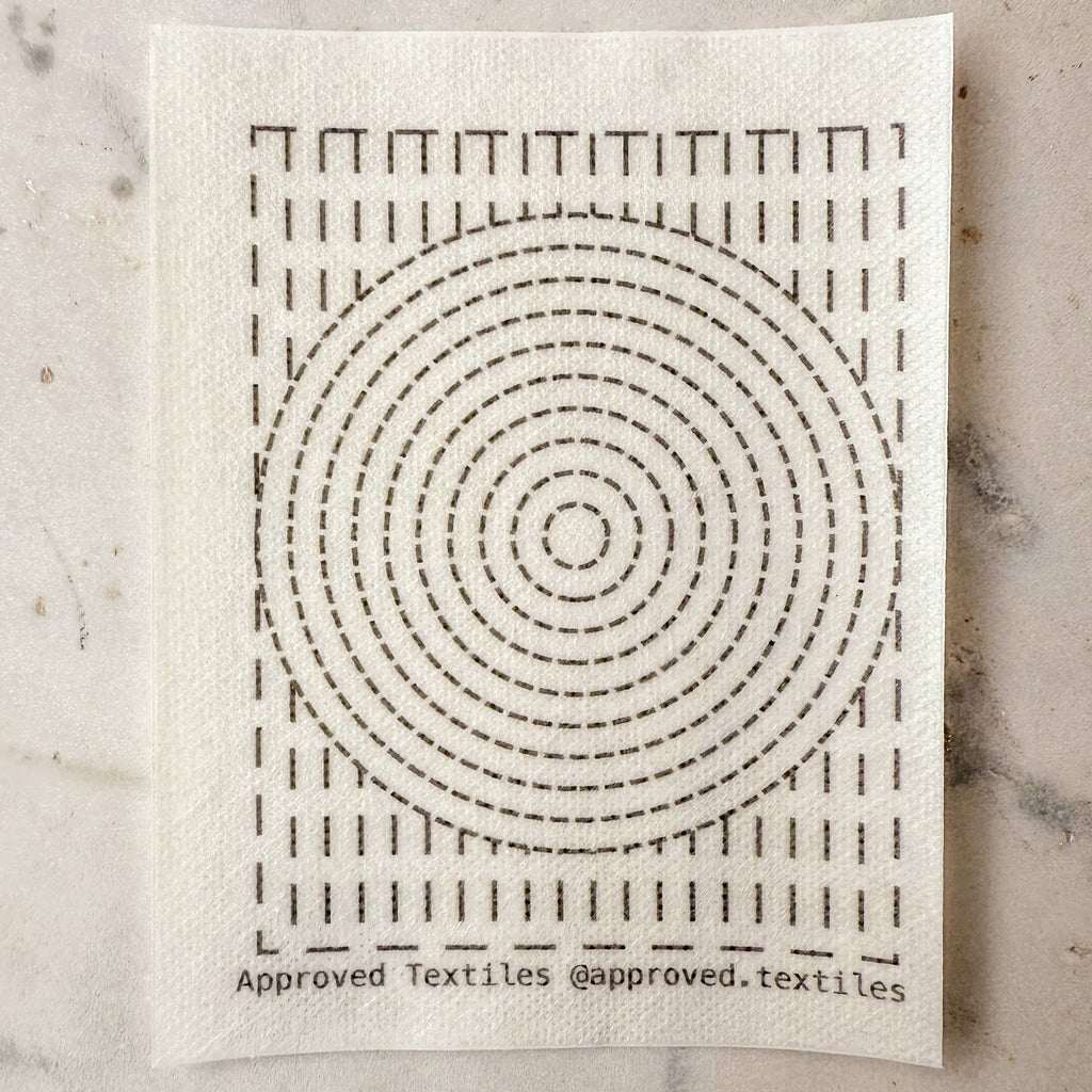 Inspired by Eva Hesse’s early meditations on precision and form, this artisan mending transfer draws from her experiments with perfect circles and careful grids. Focused, quiet, and exacting, it invites you to explore repetition and rhythm through the act of stitching—an homage to control before collapse.