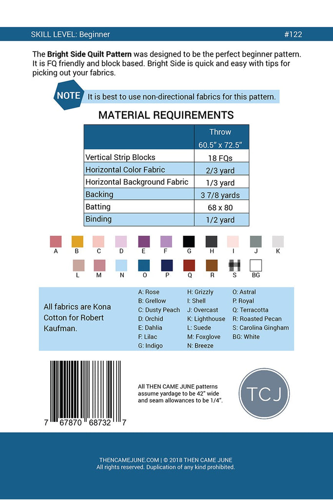 The Bright Side Quilt Pattern was designed to be the perfect beginner pattern. It is FQ friendly and block based. Bright Side is quick and easy with tips for picking out your fabrics.