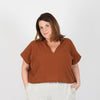 The Revel Topper is a simple boxy top that is just long enough to tuck into a high to mid-rise bottom. Its unique feature is the shawl collar and front yoke facing. Version A - Features angled bust darts, however, the fit is somewhat loose through the bust and waist. The shoulders extend to become short sleeves with deep facings. Version B - The same cut and t as version A, however, with slightly longer and narrower cut-on sleeve finished with a wide cu that lands just above the elbow. Version C - Is a modified poncho with wide, bracelet length sleeves. This version is very loose fitting and does not include darts. Sizes 00-20 & Curvy 16-34
