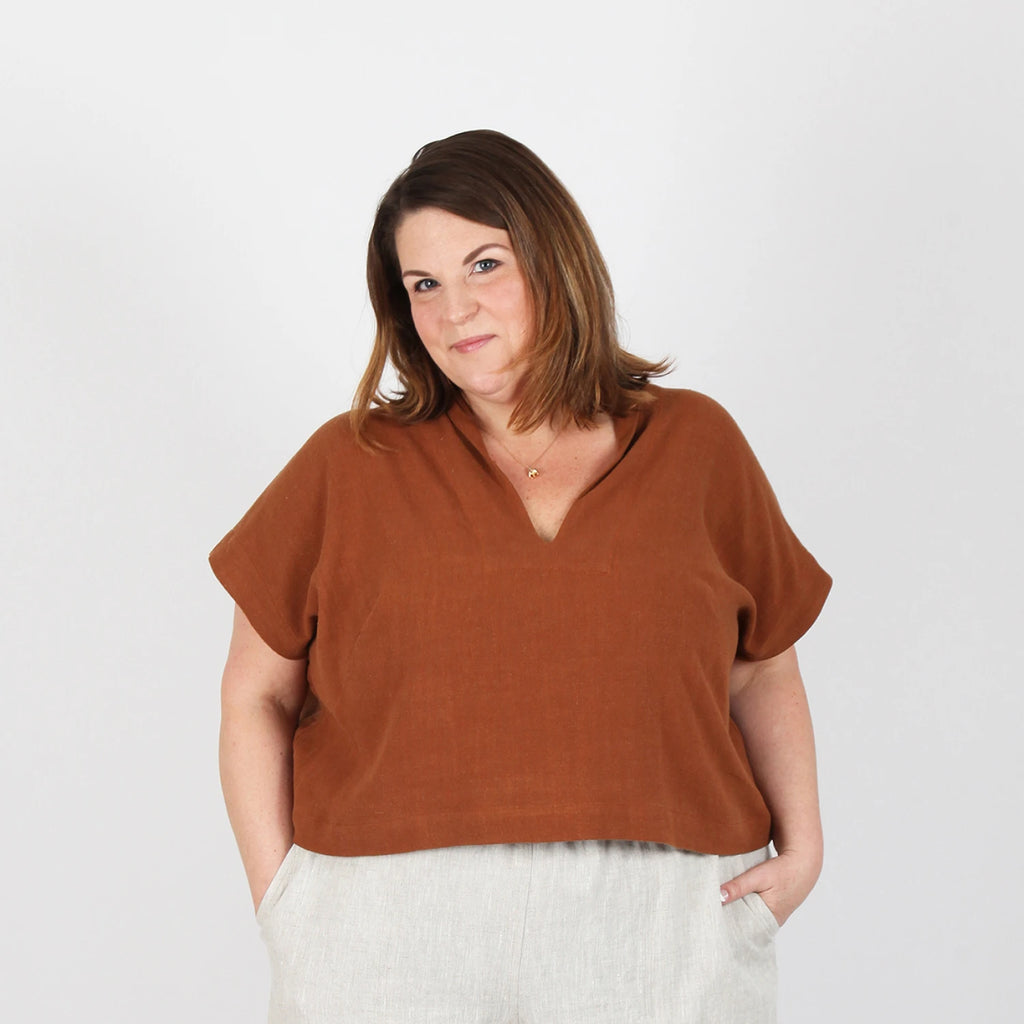 Fabric: WOVEN - Light to midweight woven fabrics with a subtle drape such as linen, viscose/linen blends, Ecovero challis, and Tencel chambray.