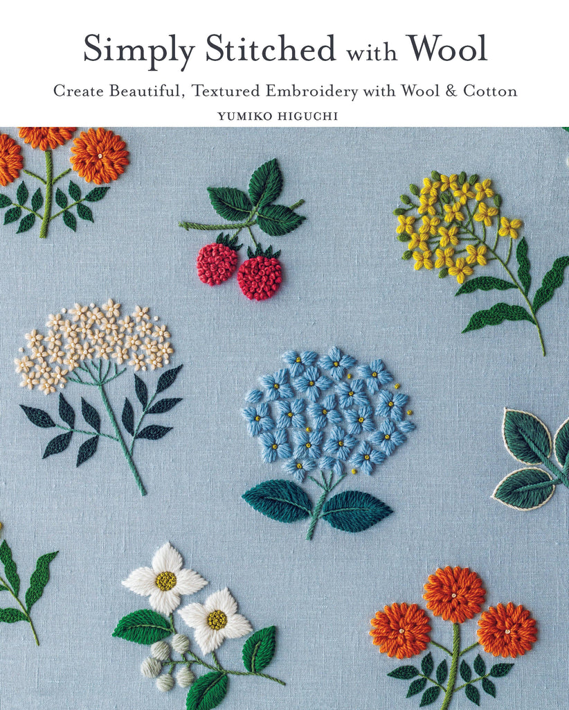 Discover the joy of embroidery with wool! In this fresh collection of botanical-inspired motifs, Yumiko Higuchi combines wool thread with cotton floss for a modern twist on embroidery. Wool thread creates fluffy, three-dimensional embroidery with a soft, warm texture. Because of its voluminous nature, wool thread stitches up quickly, allowing you to create bold embroidery designs with ease. The collection includes 24 stunning motifs featuring mushrooms, dandelions, poppies, pansies, butterflies, birds, and more, all stitched in vibrant, eye-catching colors. You’ll also find instructions for simple projects that are perfect for showcasing your wool embroidery, such as pouches, trivets, pillows, tote bags, and headbands, as well as inspiring ideas for embellishing readymade goods like scarves, hats, and sweaters. Welcome to the wonderful world of wool!