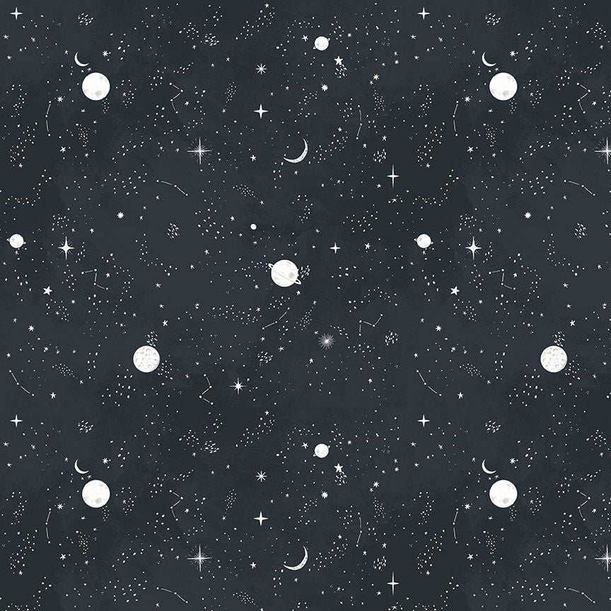 The Dear Stella "Moon Garden" fabric collection is a whimsical, modern fabric line featuring large-scale prints with a twilight theme, including florals, moths, and celestial motifs. It is available in different color palettes and is designed for quilting, apparel, and home decor projects. The collection aims for a magical, enchanting feel with its detailed, large prints.