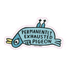 Exhausted Pigeon Sticker by Gemma Correll. Waterproof, sun-proof, long-lasting big sticker singles. Made in USA Sold loose in 12s Longest side ~3 inches See more designs by Gemma Correll here.