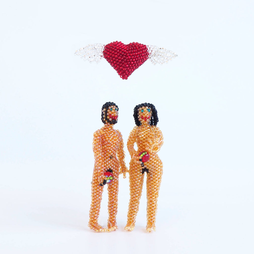 Our beaded ornaments and brooches are made by a women’s co-operative in a small village on the shores of Lake Atitlan in Guatemala. The women work in groups of five or so to produce these designs. The glass beads are placed in a multicolored pile upon a flat surface in front of each woman and are picked up on needles held between each woman's thumb and index finger in a process so quick and precise that it seems like sleight of hand. As beads accrue, the sculpture emerges. Beaders must learn to weave or sculpt each new design separately, and to achieve the uniformity necessary they must memorize hundreds of steps for each figure.