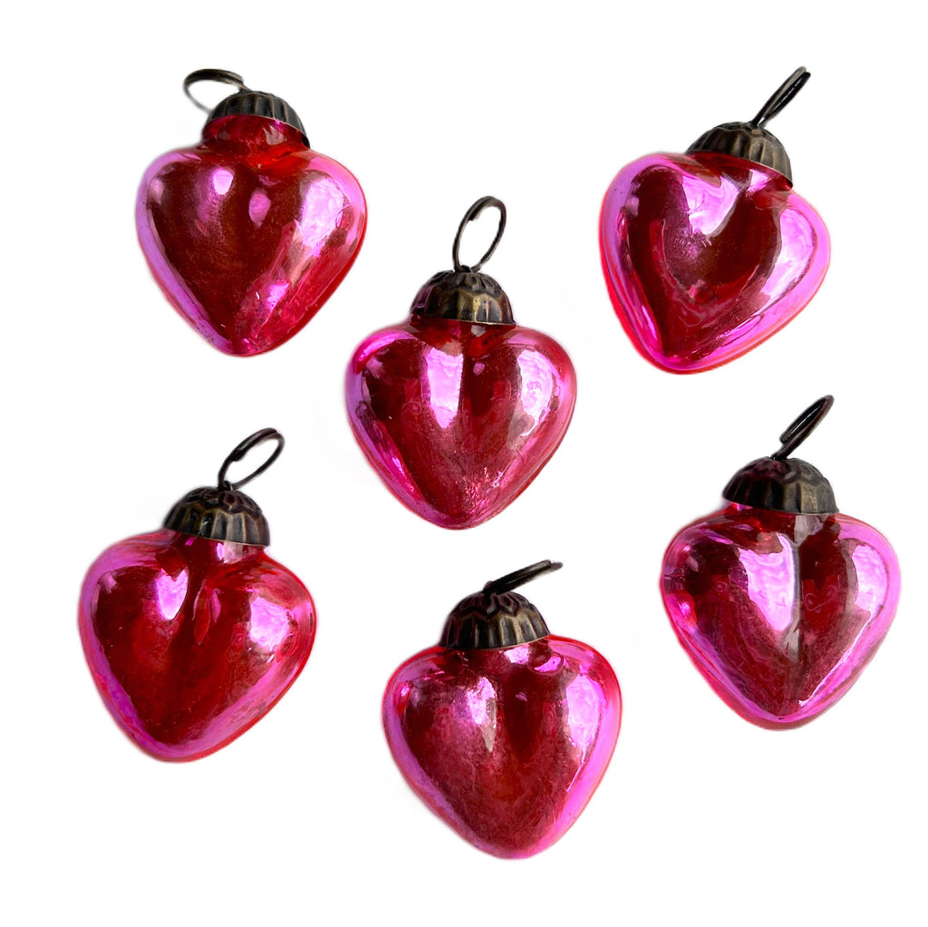 1"mini glass heart ornament in Pink.