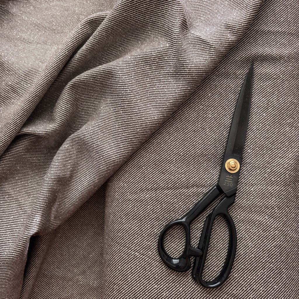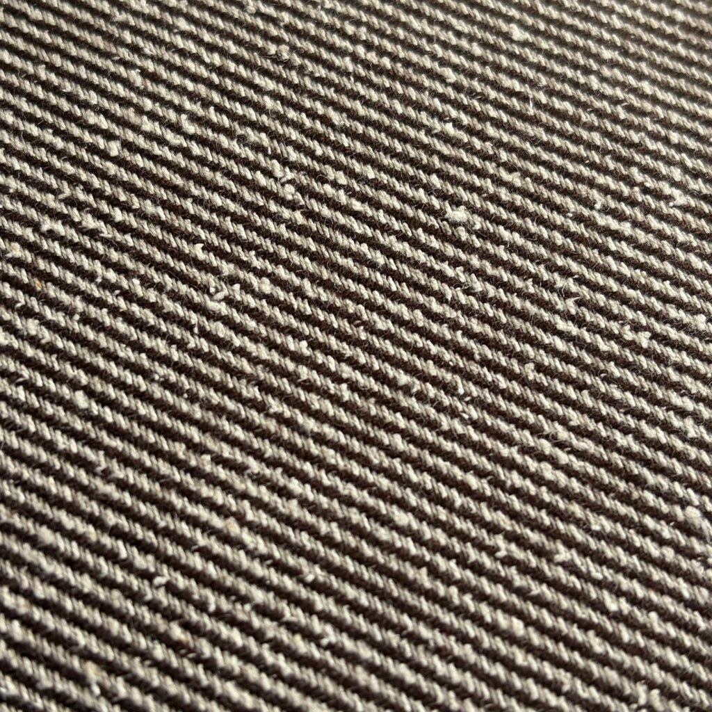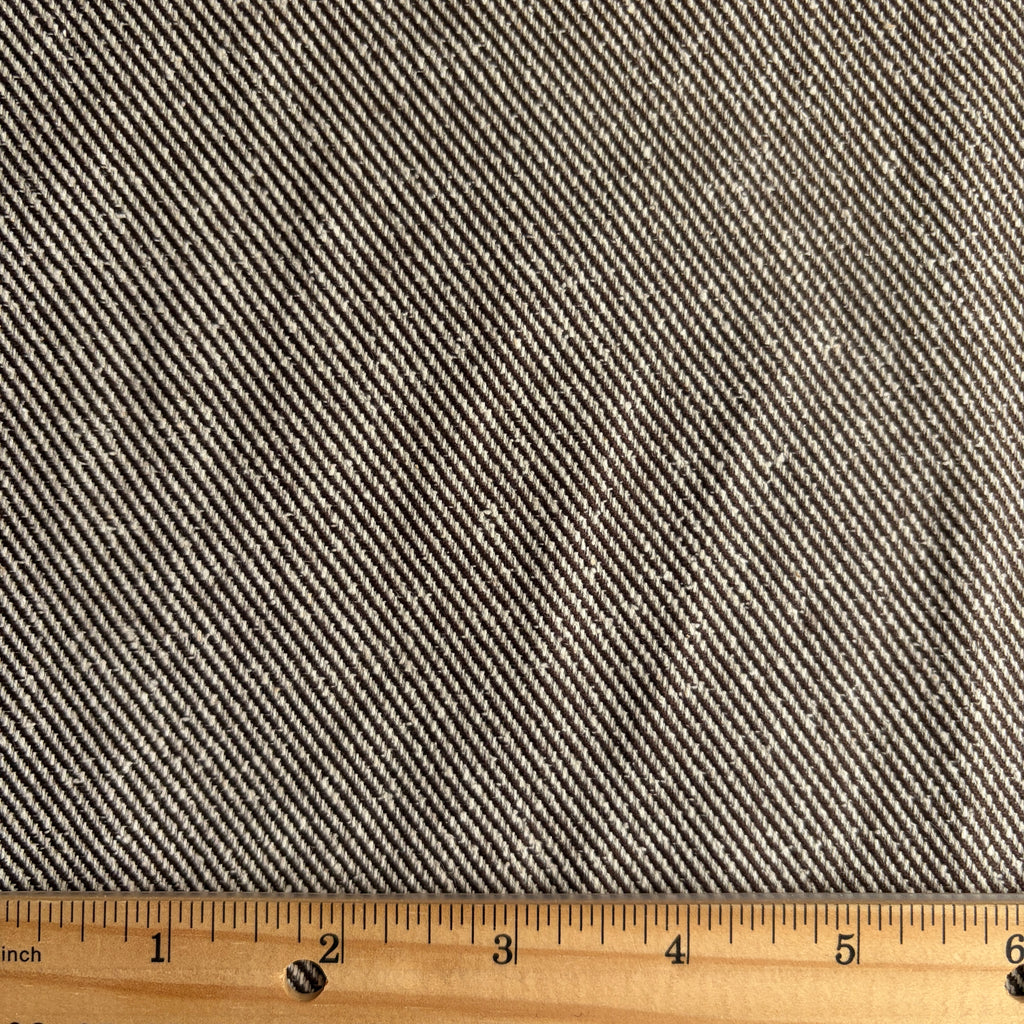 A sophisticated blend of silk and wool in a rich mocha tone. The twill weave provides structure and subtle sheen, while the heathered melange creates visual depth. Versatile for tailored garments—suits, sport coats, and dresses—where refined drape and understated elegance matter.