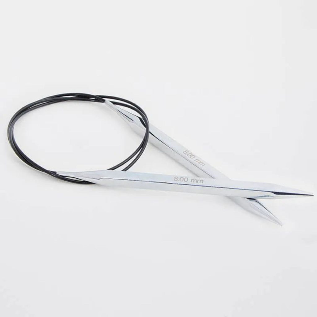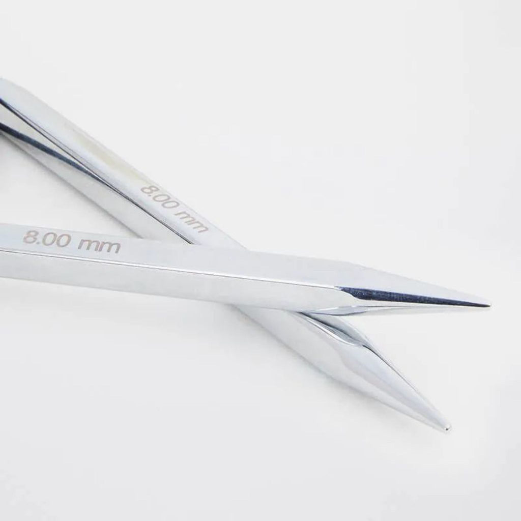 Needle sizes are measured diagonally, ensuring compatibility with standard needle gauges, similar to conventional round needles. This collection includes single-pointed, double-pointed, fixed circular, and interchangeable needles, as well as convenient sets, offering versatility for a range of knitting projects.