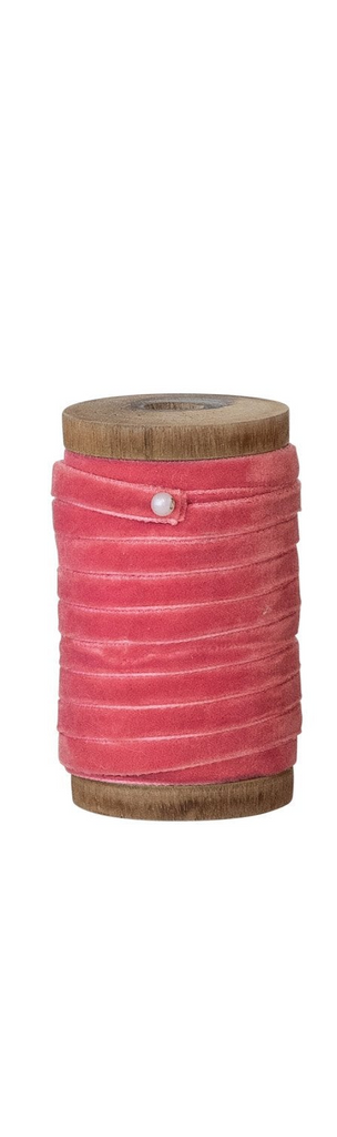 Velvet Ribbon on Wood Spool / Pink