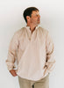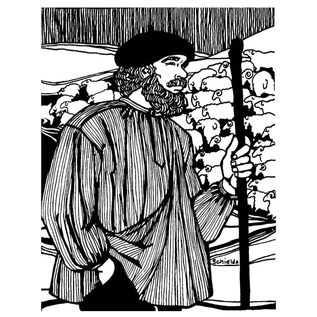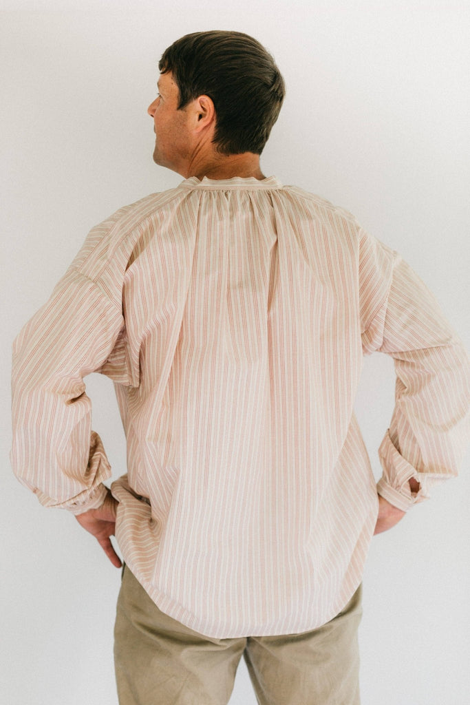 This roomy pullover style shirt is traditional garb for cheesemakers in Roquefort, France, and a comfortable smock for your studio or daily outings. It is a popular sewing pattern choice for Medieval and Renaissance reenactors, as well as for making an everyday tunic-style shirt. Sized for men and women, the easy-sew smock features shoulder yoke, front placket, simple narrow buttoned neckband, and optional underarm gussets. Sleeves are gathered at the wrist into a buttoned band cuff.