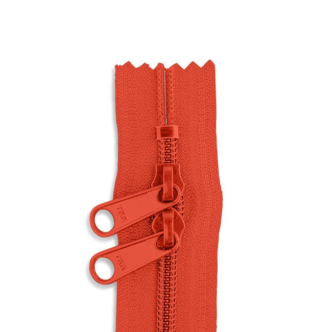 YKK #4.5 nylon coil non-separating, dual closed-end zipper. Zipper is close-ended on both sides. Features two extra-long sliders positioned head-to-head. Ideal for use with backpacks, luggage and bags. Available in a variety of colors and lengths. YKK is a registered trademark of YKK Corporation in Japan and other countries/regions.