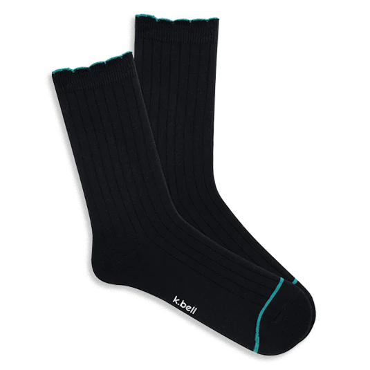 These charcoal wool blend socks keep it simple with a classic ribbed look and cozy feel. The scalloped cuff adds a fun pop of color. Warm and comfy, they’re perfect for everyday wear with a playful twist.