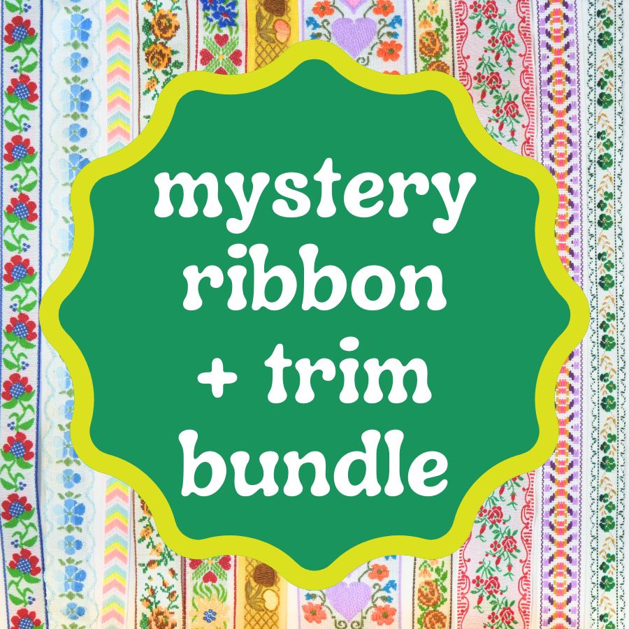 At Harmony we love finding rare, vintage, and extra special ribbons! We go to great lengths to find hidden trim treasures for you. In the past, our trim has only been available in-person at our shop in Provo, Utah. But now, we joyfully curate a monthly mystery bundle of ribbons and trims inspired by a certain mood, aesthetic, fabric, or art piece - available exclusively online.