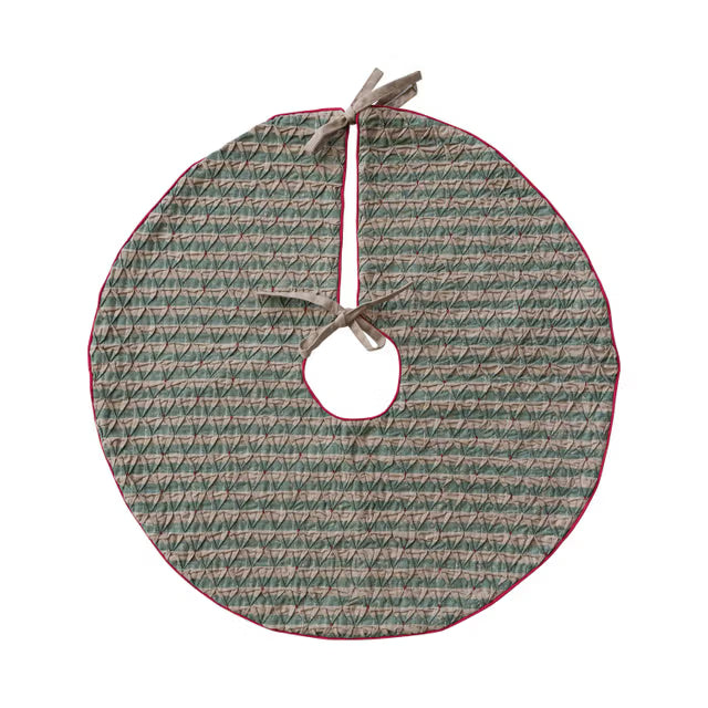 Smocked Striped Tree Skirt w/ Hand-Embroidered Beads & Velvet Piping
