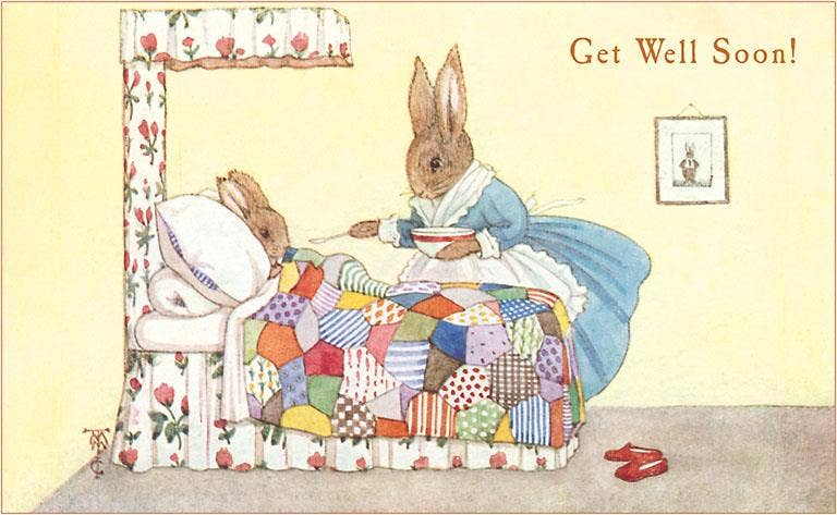 Vintage Postcard / Get Well Soon Sick Rabbit