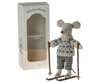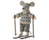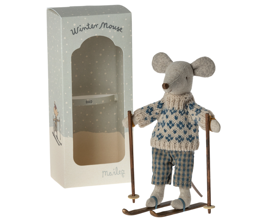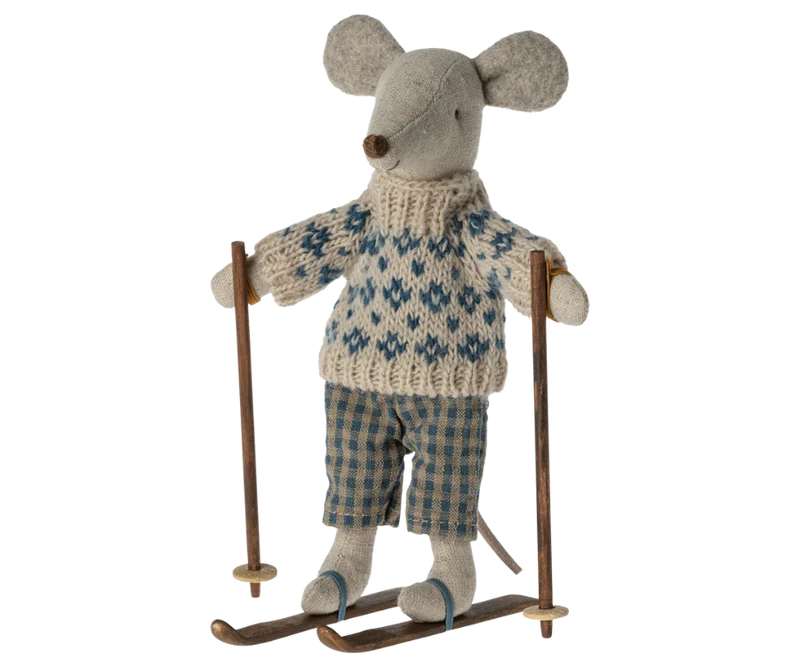 A mouse ready for hours of fun on the slopes during the cold wintertime. Each playset contains a warmly dressed mouse with a pair of ski and poles. A funny detail is the ears which are made so they look like the mouse is wearing ear warmers.